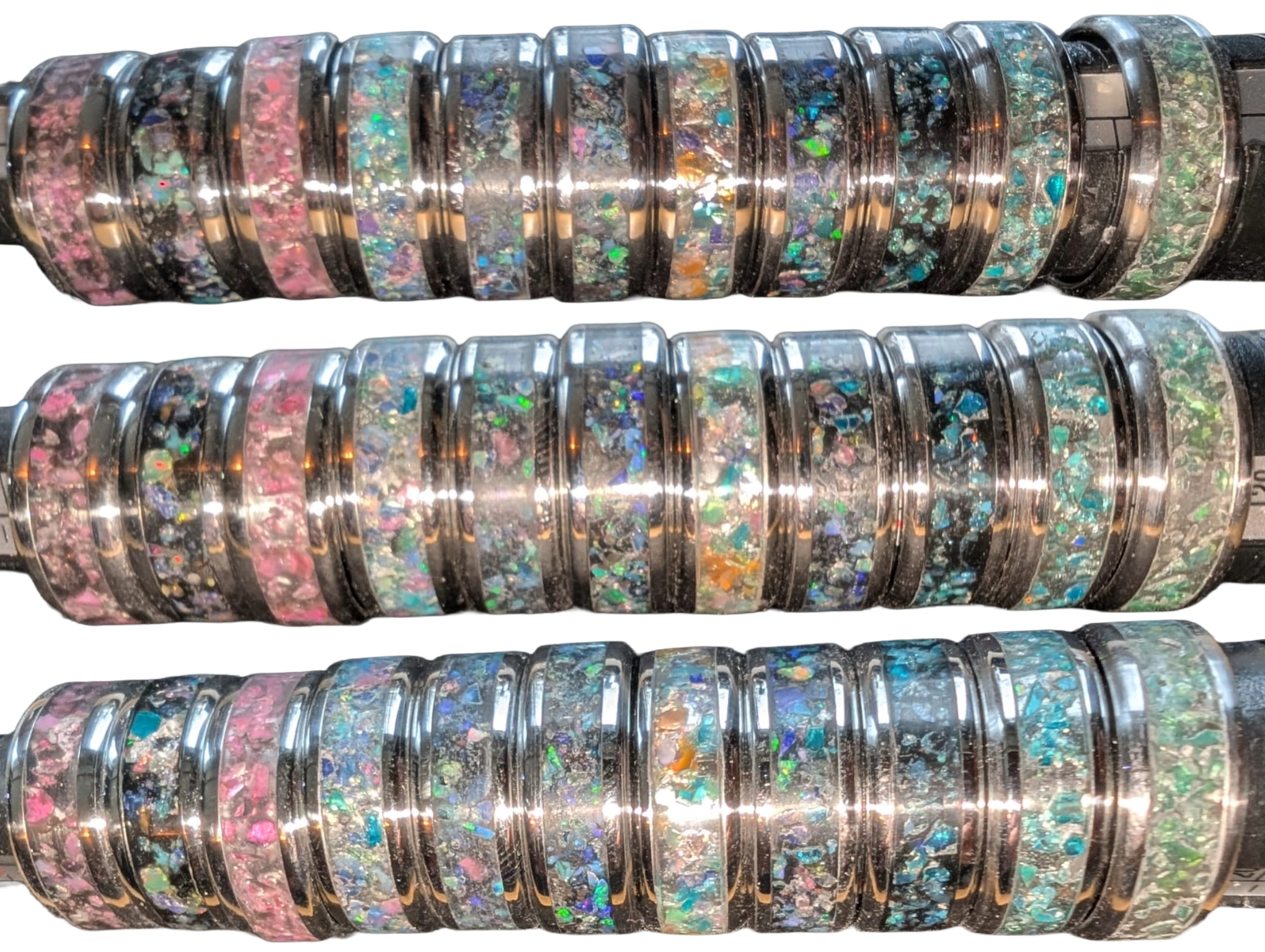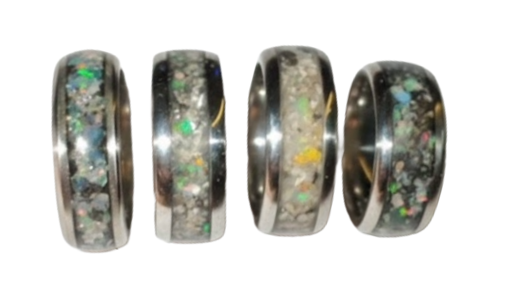 Using high-quality bases of Stainless Steel, Sterling Silver, or the unique, layered patterns of Damascus Steel, I handcraft each ring to your specific wishes. The heart of these pieces is often formed by vibrant Opal, known for its mesmerizing play of light. This can be delicately combined with the ashes of a loved one or a dear pet.